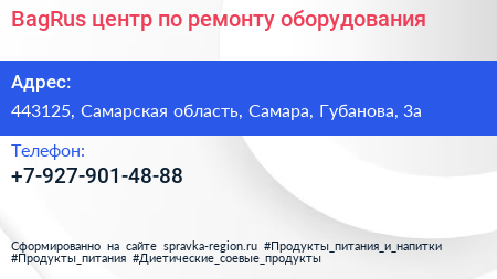 BagRus, центр по ремонту оборудования по адресу 443125, Самарская область, Самара, Губанова, 3а в дальнейшем Организация, размещена в следующих категориях:
