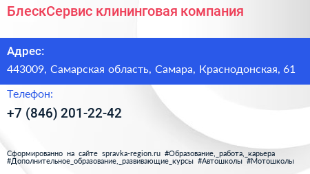 БлескСервис, клининговая компания по адресу 443009, Самарская область, Самара, Краснодонская, 61 в дальнейшем Организация, размещена в следующих категориях: