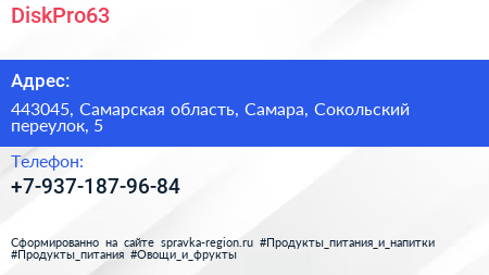 DiskPro63 по адресу 443045, Самарская область, Самара, Сокольский переулок, 5 в дальнейшем Организация, размещена в следующих категориях: