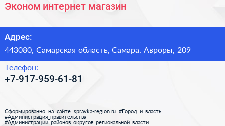 Эконом, интернет-магазин по адресу 443080, Самарская область, Самара, Авроры, 209 в дальнейшем Организация, размещена в следующих категориях: