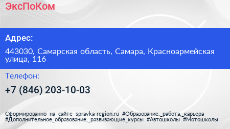ЭксПоКом по адресу 443030, Самарская область, Самара, Красноармейская улица, 116 в дальнейшем Организация, размещена в следующих категориях: