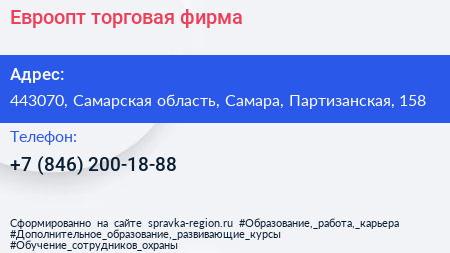 Евроопт, торговая фирма по адресу 443070, Самарская область, Самара, Партизанская, 158 в дальнейшем Организация, размещена в следующих категориях: