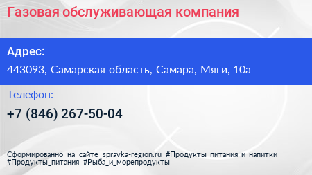 Газовая обслуживающая компания по адресу 443093, Самарская область, Самара, Мяги, 10а в дальнейшем Организация, размещена в следующих категориях: