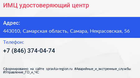 ИМЦ, удостоверяющий центр по адресу 443010, Самарская область, Самара, Некрасовская, 56 в дальнейшем Организация, размещена в следующих категориях: