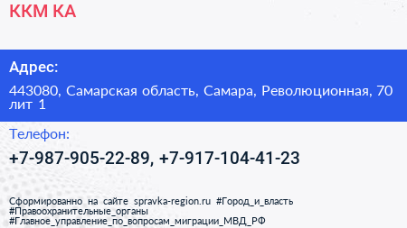 ККМ.КА по адресу 443080, Самарская область, Самара, Революционная, 70 лит 1 в дальнейшем Организация, размещена в следующих категориях: