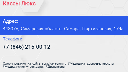 Кассы Люкс по адресу 443076, Самарская область, Самара, Партизанская, 174а в дальнейшем Организация, размещена в следующих категориях: