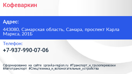 Кофеваркин по адресу 443080, Самарская область, Самара, проспект Карла Маркса, 201Б в дальнейшем Организация, размещена в следующих категориях: