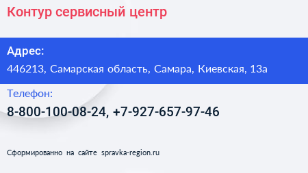 Контур, сервисный центр по адресу 446213, Самарская область, Самара, Киевская, 13а в дальнейшем Организация, размещена в следующих категориях:
