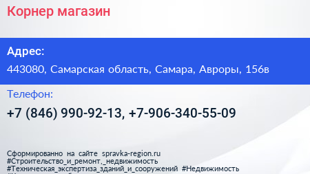 Корнер, магазин по адресу 443080, Самарская область, Самара, Авроры, 156в в дальнейшем Организация, размещена в следующих категориях: