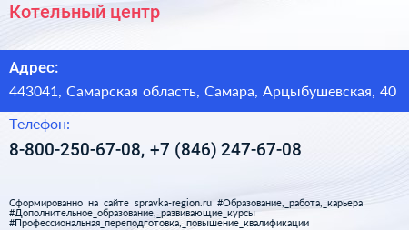 Котельный центр по адресу 443041, Самарская область, Самара, Арцыбушевская, 40 в дальнейшем Организация, размещена в следующих категориях: