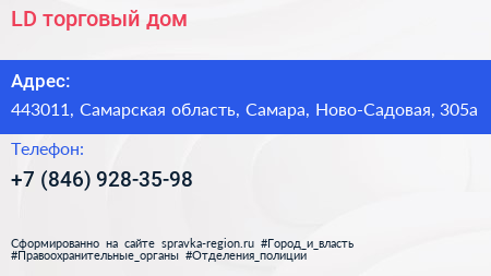 LD, торговый дом по адресу 443011, Самарская область, Самара, Ново-Садовая, 305а в дальнейшем Организация, размещена в следующих категориях: