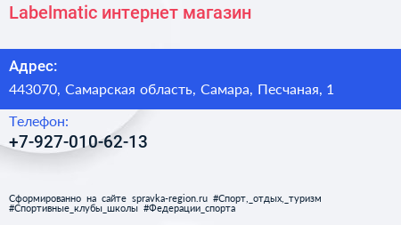 Labelmatic, интернет-магазин по адресу 443070, Самарская область, Самара, Песчаная, 1 в дальнейшем Организация, размещена в следующих категориях: