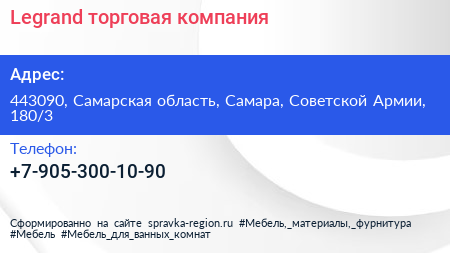Legrand, торговая компания по адресу 443090, Самарская область, Самара, Советской Армии, 180/3 в дальнейшем Организация, размещена в следующих категориях: