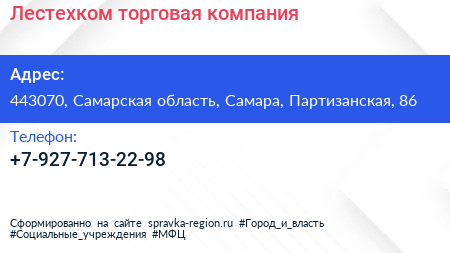 Лестехком, торговая компания по адресу 443070, Самарская область, Самара, Партизанская, 86 в дальнейшем Организация, размещена в следующих категориях: