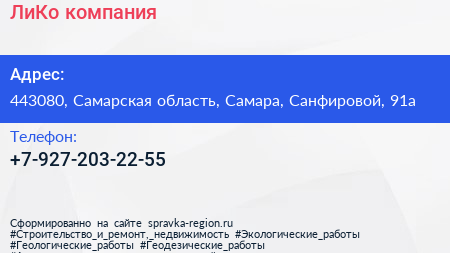 ЛиКо, компания по адресу 443080, Самарская область, Самара, Санфировой, 91а в дальнейшем Организация, размещена в следующих категориях: