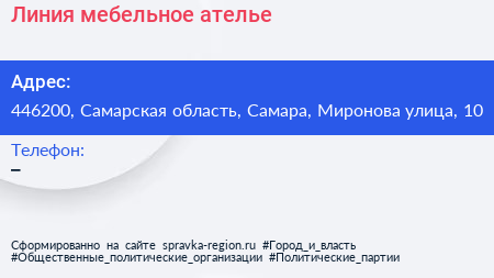 Линия, мебельное ателье по адресу 446200, Самарская область, Самара, Миронова улица, 10 в дальнейшем Организация, размещена в следующих категориях: