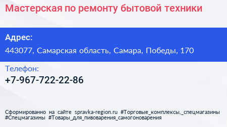 Мастерская по ремонту бытовой техники по адресу 443077, Самарская область, Самара, Победы, 170 в дальнейшем Организация, размещена в следующих категориях: