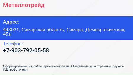Металлотрейд по адресу 443031, Самарская область, Самара, Демократическая, 45а в дальнейшем Организация, размещена в следующих категориях: