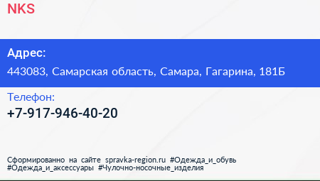 NKS по адресу 443083, Самарская область, Самара, Гагарина, 181Б в дальнейшем Организация, размещена в следующих категориях: