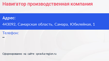 Навигатор, производственная компания по адресу 443092, Самарская область, Самара, Юбилейная, 1 в дальнейшем Организация, размещена в следующих категориях: