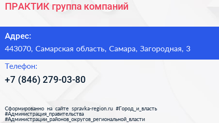 ПРАКТИК, группа компаний по адресу 443070, Самарская область, Самара, Загородная, 3 в дальнейшем Организация, размещена в следующих категориях: