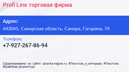 Profi Line, торговая фирма по адресу 443045, Самарская область, Самара, Гагарина, 74 в дальнейшем Организация, размещена в следующих категориях:
