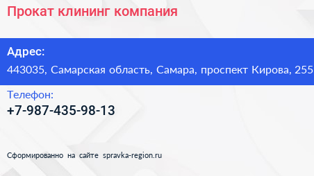 Прокат клининг, компания по адресу 443035, Самарская область, Самара, проспект Кирова, 255 в дальнейшем Организация, размещена в следующих категориях: