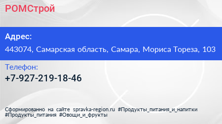 РОМСтрой по адресу 443074, Самарская область, Самара, Мориса Тореза, 103 в дальнейшем Организация, размещена в следующих категориях:
