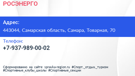 РОСЭНЕРГО по адресу 443044, Самарская область, Самара, Товарная, 70 в дальнейшем Организация, размещена в следующих категориях: