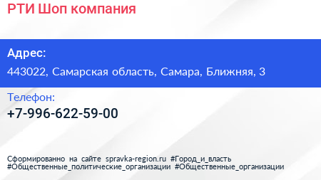 РТИ Шоп, компания по адресу 443022, Самарская область, Самара, Ближняя, 3 в дальнейшем Организация, размещена в следующих категориях: