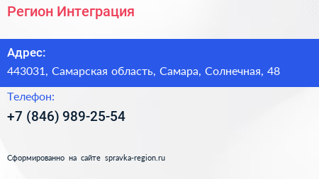 Регион-Интеграция по адресу 443031, Самарская область, Самара, Солнечная, 48 в дальнейшем Организация, размещена в следующих категориях: