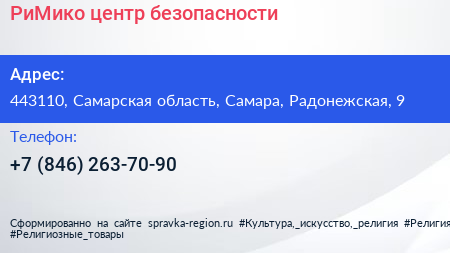 РиМико, центр безопасности по адресу 443110, Самарская область, Самара, Радонежская, 9 в дальнейшем Организация, размещена в следующих категориях: