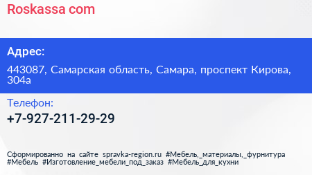 Roskassa.com по адресу 443087, Самарская область, Самара, проспект Кирова, 304а в дальнейшем Организация, размещена в следующих категориях: