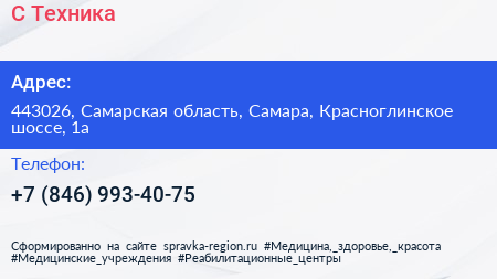 С-Техника по адресу 443026, Самарская область, Самара, Красноглинское шоссе, 1а в дальнейшем Организация, размещена в следующих категориях: