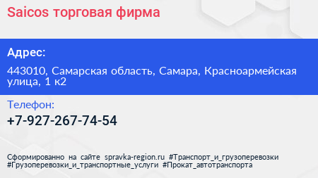 Saicos, торговая фирма по адресу 443010, Самарская область, Самара, Красноармейская улица, 1 к2 в дальнейшем Организация, размещена в следующих категориях: