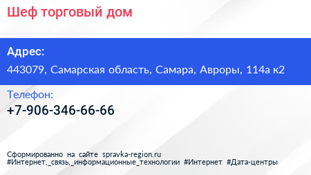 Шеф, торговый дом по адресу 443079, Самарская область, Самара, Авроры, 114а к2 в дальнейшем Организация, размещена в следующих категориях: