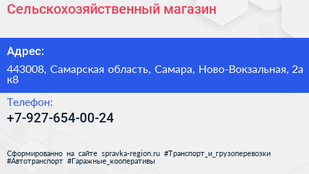 Сельскохозяйственный магазин по адресу 443008, Самарская область, Самара, Ново-Вокзальная, 2а к8 в дальнейшем Организация, размещена в следующих категориях: