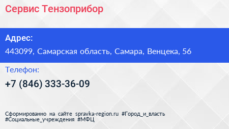 Сервис Тензоприбор по адресу 443099, Самарская область, Самара, Венцека, 56 в дальнейшем Организация, размещена в следующих категориях: