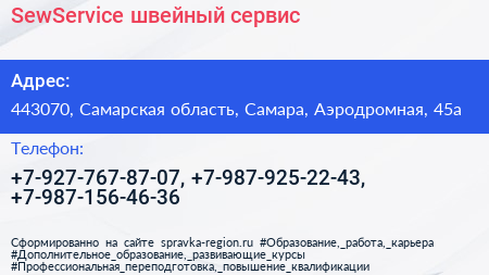 SewService, швейный сервис по адресу 443070, Самарская область, Самара, Аэродромная, 45а в дальнейшем Организация, размещена в следующих категориях: