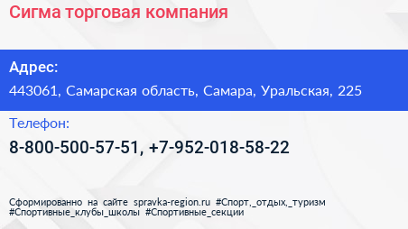 Сигма, торговая компания по адресу 443061, Самарская область, Самара, Уральская, 225 в дальнейшем Организация, размещена в следующих категориях: