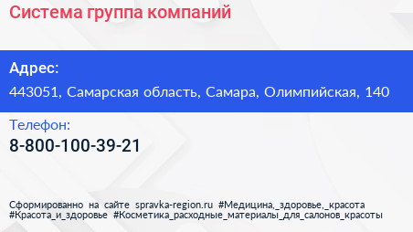 Система, группа компаний по адресу 443051, Самарская область, Самара, Олимпийская, 140 в дальнейшем Организация, размещена в следующих категориях: