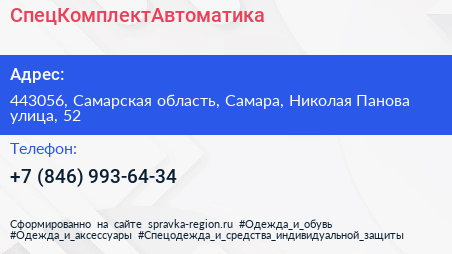 СпецКомплектАвтоматика по адресу 443056, Самарская область, Самара, Николая Панова улица, 52 в дальнейшем Организация, размещена в следующих категориях: