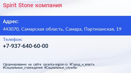Spirit Stone, компания по адресу 443070, Самарская область, Самара, Партизанская, 19 в дальнейшем Организация, размещена в следующих категориях: