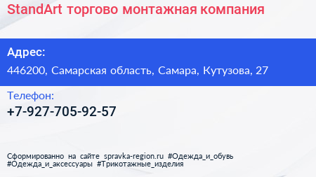 StandArt, торгово-монтажная компания по адресу 446200, Самарская область, Самара, Кутузова, 27 в дальнейшем Организация, размещена в следующих категориях: