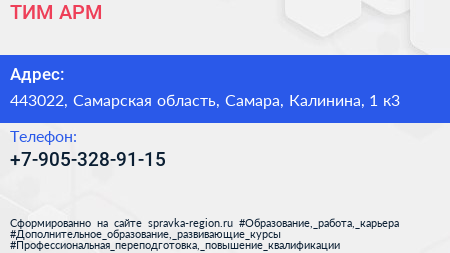 ТИМ-АРМ по адресу 443022, Самарская область, Самара, Калинина, 1 к3 в дальнейшем Организация, размещена в следующих категориях: