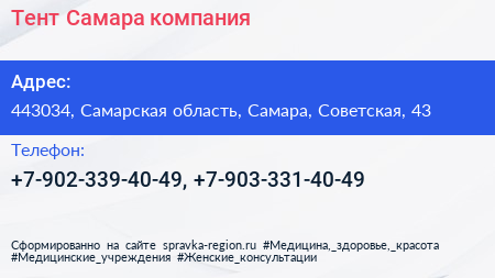 Тент-Самара, компания по адресу 443034, Самарская область, Самара, Советская, 43 в дальнейшем Организация, размещена в следующих категориях: