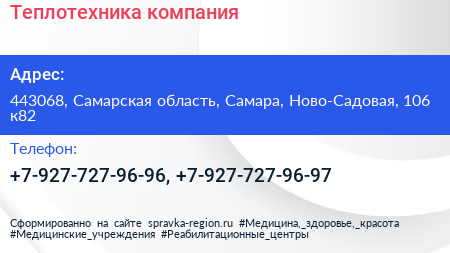 Теплотехника, компания по адресу 443068, Самарская область, Самара, Ново-Садовая, 106 к82 в дальнейшем Организация, размещена в следующих категориях: