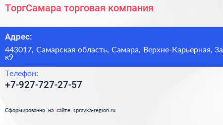 ТоргСамара, торговая компания по адресу 443017, Самарская область, Самара, Верхне-Карьерная, 3а к9 в дальнейшем Организация, размещена в следующих категориях:
