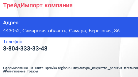 ТрейдИмпорт, компания по адресу 443052, Самарская область, Самара, Береговая, 36 в дальнейшем Организация, размещена в следующих категориях: