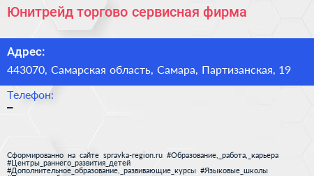 Юнитрейд, торгово-сервисная фирма по адресу 443070, Самарская область, Самара, Партизанская, 19 в дальнейшем Организация, размещена в следующих категориях: